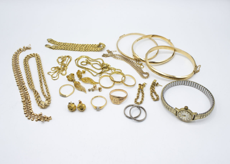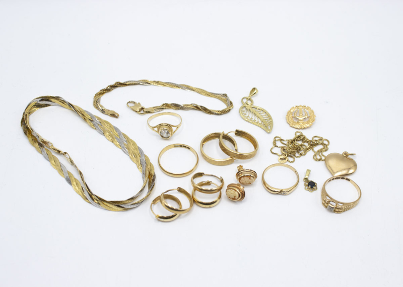 178: (15940-1) Erä kultaa 41,40g/750 br, 222,81g/585 br.
