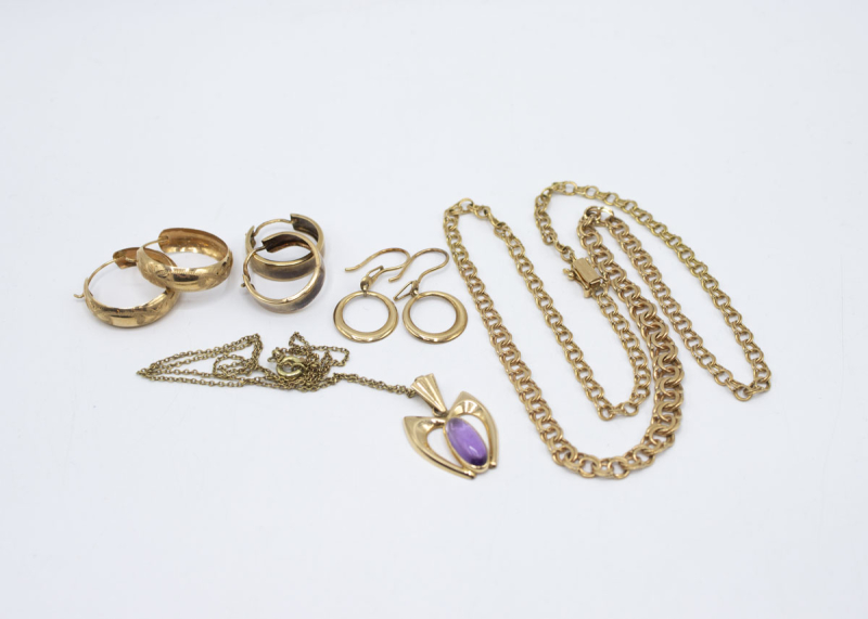 160: (15898) Erä kaulakoruja 9,10g/585 br.