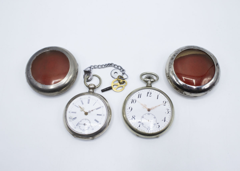 171: (15925-1) Taskukellot 2 kpl, hopea- ja metallikuorinen