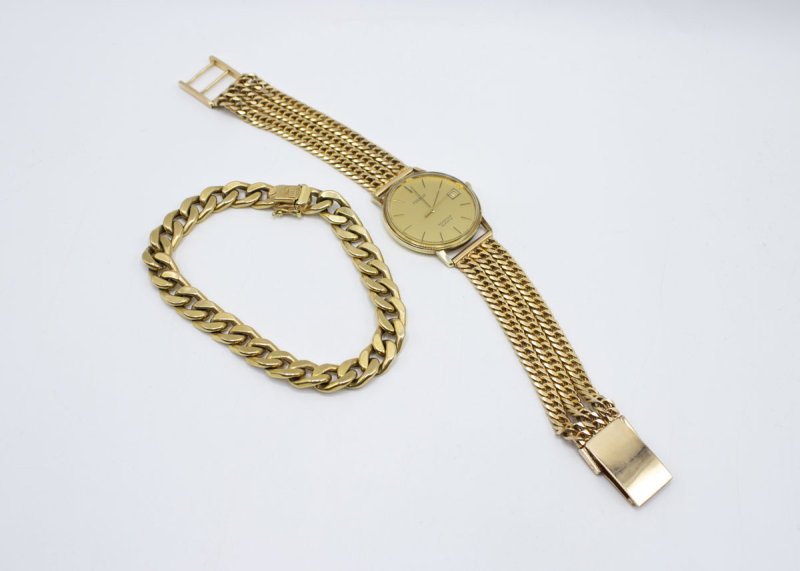 179: (15940-2) Kultakuoriset rannekellot Tissot ja Genève (585, 750)