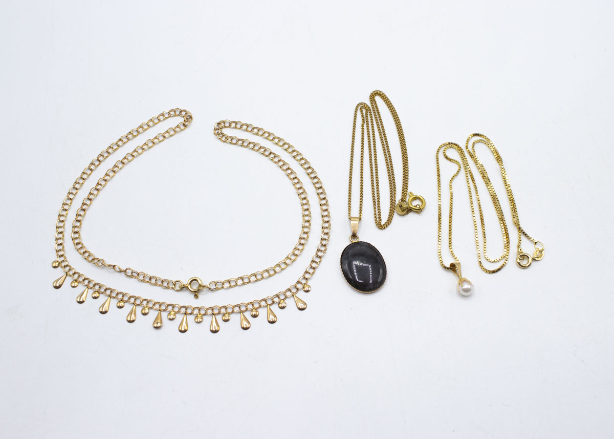 160: (15898) Erä kaulakoruja 9,10g/585 br.
