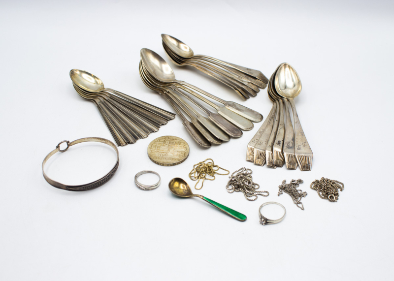 26: (16416-1) Erä hopeaa 20,75g/925 br, 24,10g/900, 386,19g (916, 875, 813)