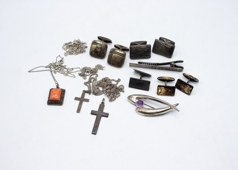 415: (17360-3) Erä hopeakoruja 27,11g (925, 813) br.