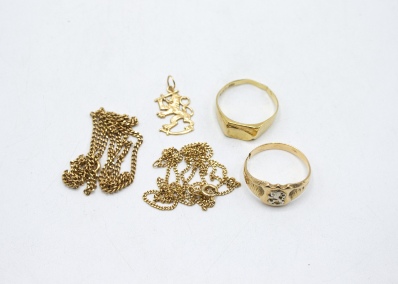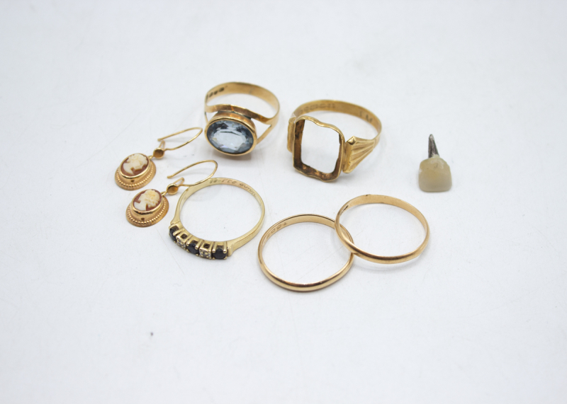 412: (17364) Erä kultaa 6,90g/750 br, 8,93g/585