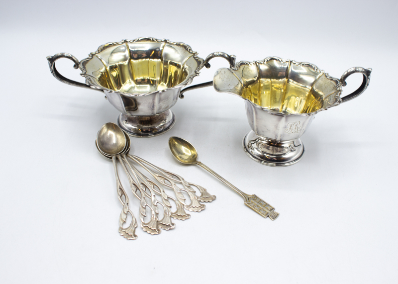 424: (17060-1) Erä hopeaa 224,28g (830, 813)