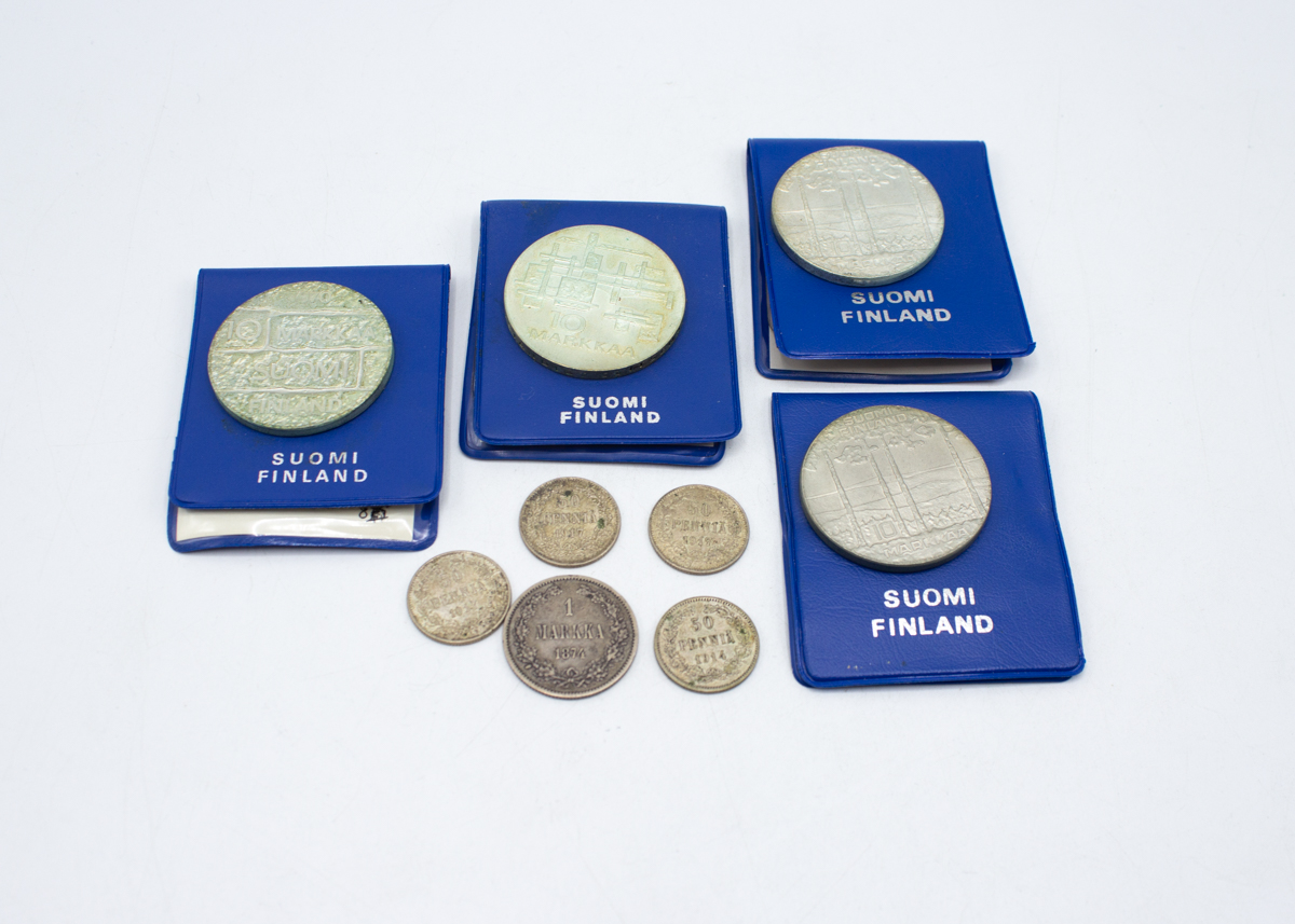 435: (17230-2) Hopeisia juhlarahoja sekä vanhoja käyttörahoja 23,95g/900, 69,40g/500, 15,10g (868, 750)