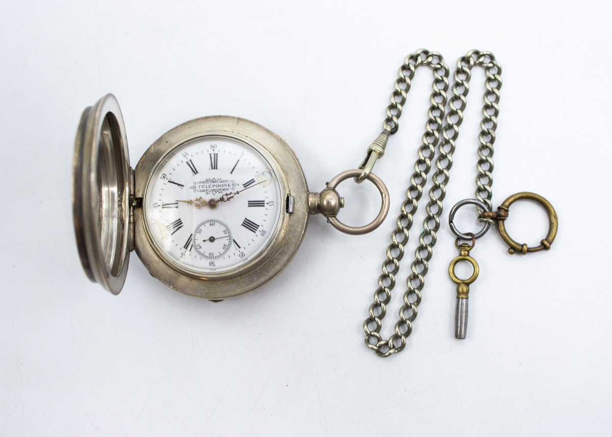 224: (16137-5) Hopeakuorinen taskukello Telephone 163,62g/875 br.