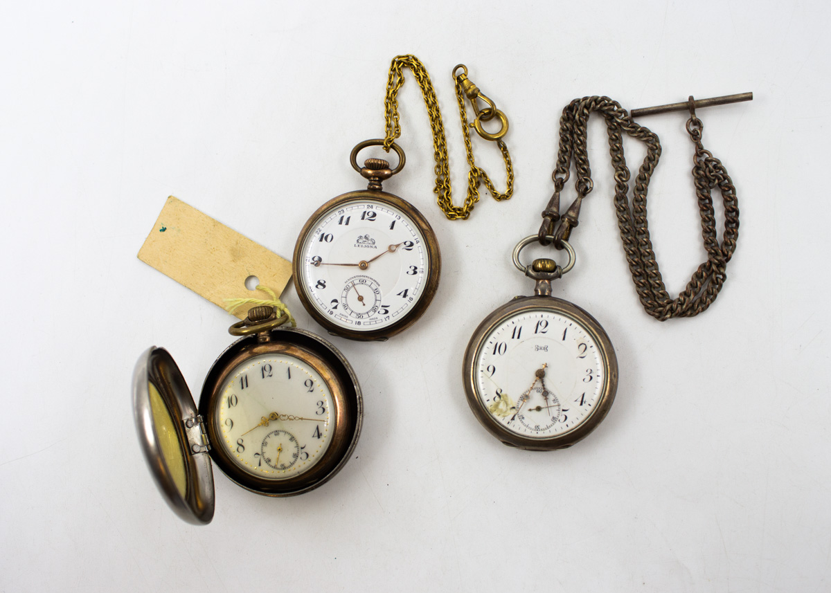 225: (16137-6) Hopeakuorisia taskukelloja 3 kpl 263,63g/800 br.