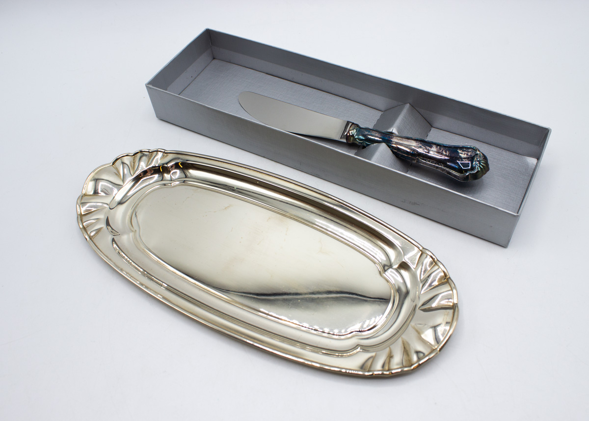 236: (16157-4) Chippendale veitsi ja tarjotin 170,06g/830 br.