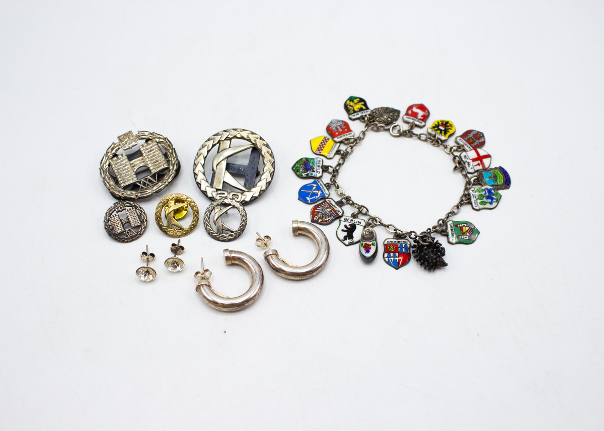 274: (16333-1) Erä hopeamerkkejä ja koruja 46,79g (925, 830, 813) br.